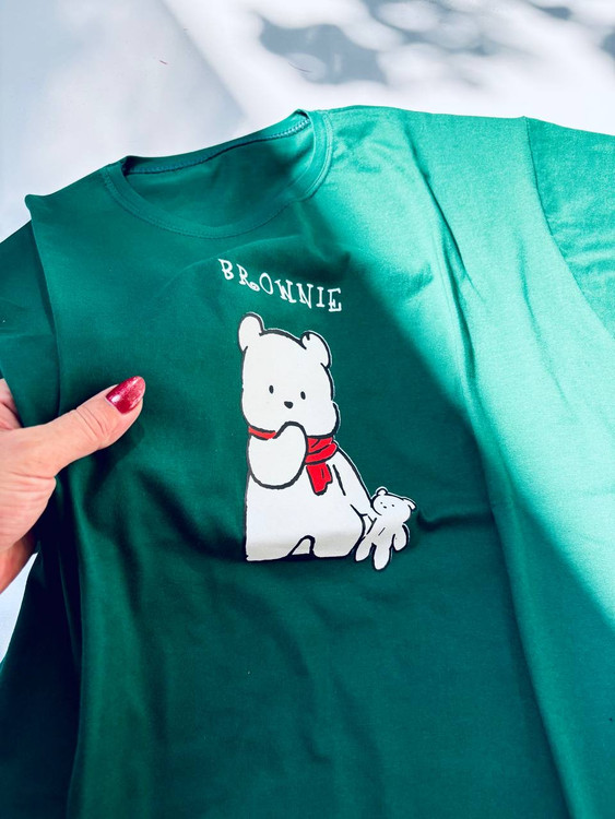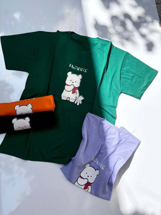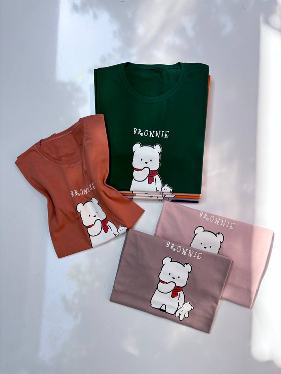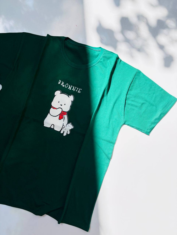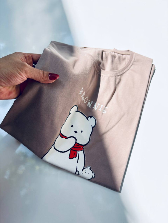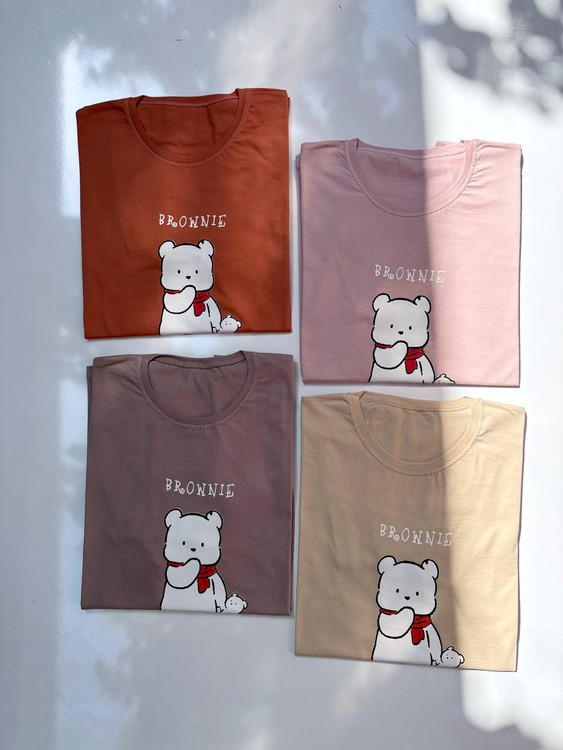 تیشرت زنانه نخی قواره‌دار طرح Brownie