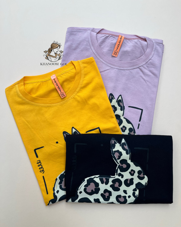 اگر دنبال یه تیشرت دخترونه، سبک و جذاب برای روزمره هستی، این مدل با چاپ خرگوشی دوستداشتنی و ۸ رنگ شاد دقیقاً گزینه ایدهآل توئه