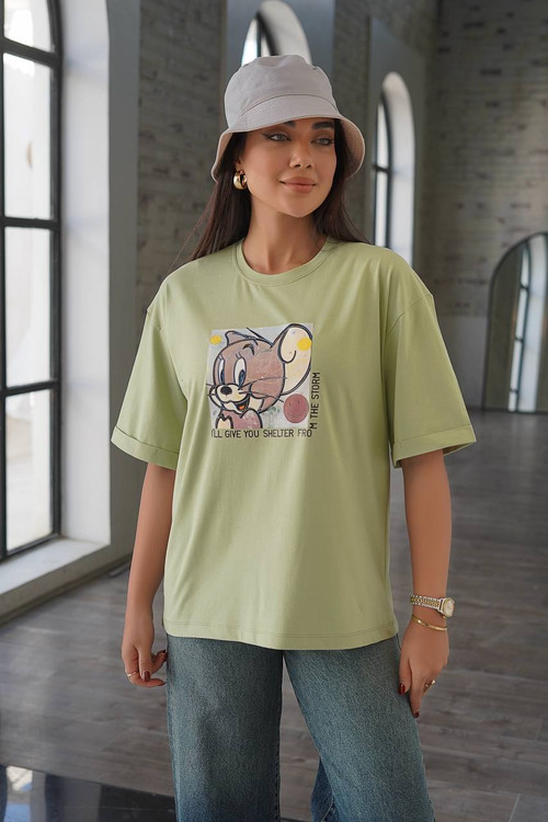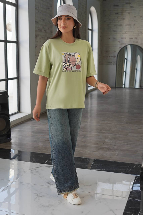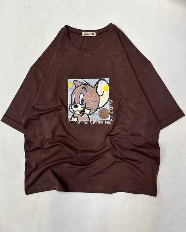 تیشرت زنانه مدل باکسی آستین پاکتی پنبهای