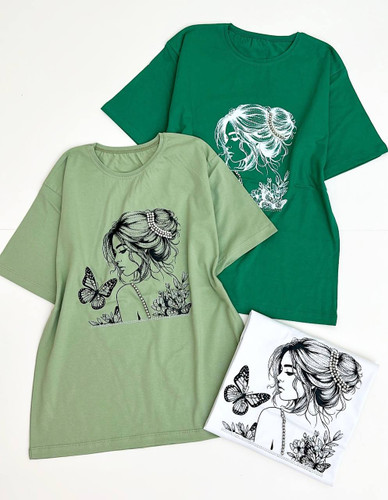 تیشرت زنانه آستین کوتاه باکسی نخی طرح روشنا