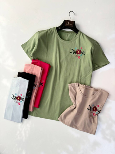 تیشرت زنانه آستین کوتاه گلدوزی شده نخی طرح ثریا