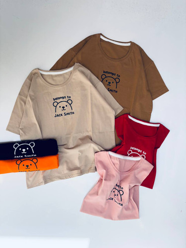 ناموجودتیشرت زنانه آستین کوتاه باکسی نخی طرح Cute