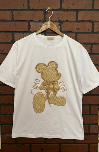 تیشرت دخترانه آستین کوتاه نخی طرح میکی موس نگیندوزی